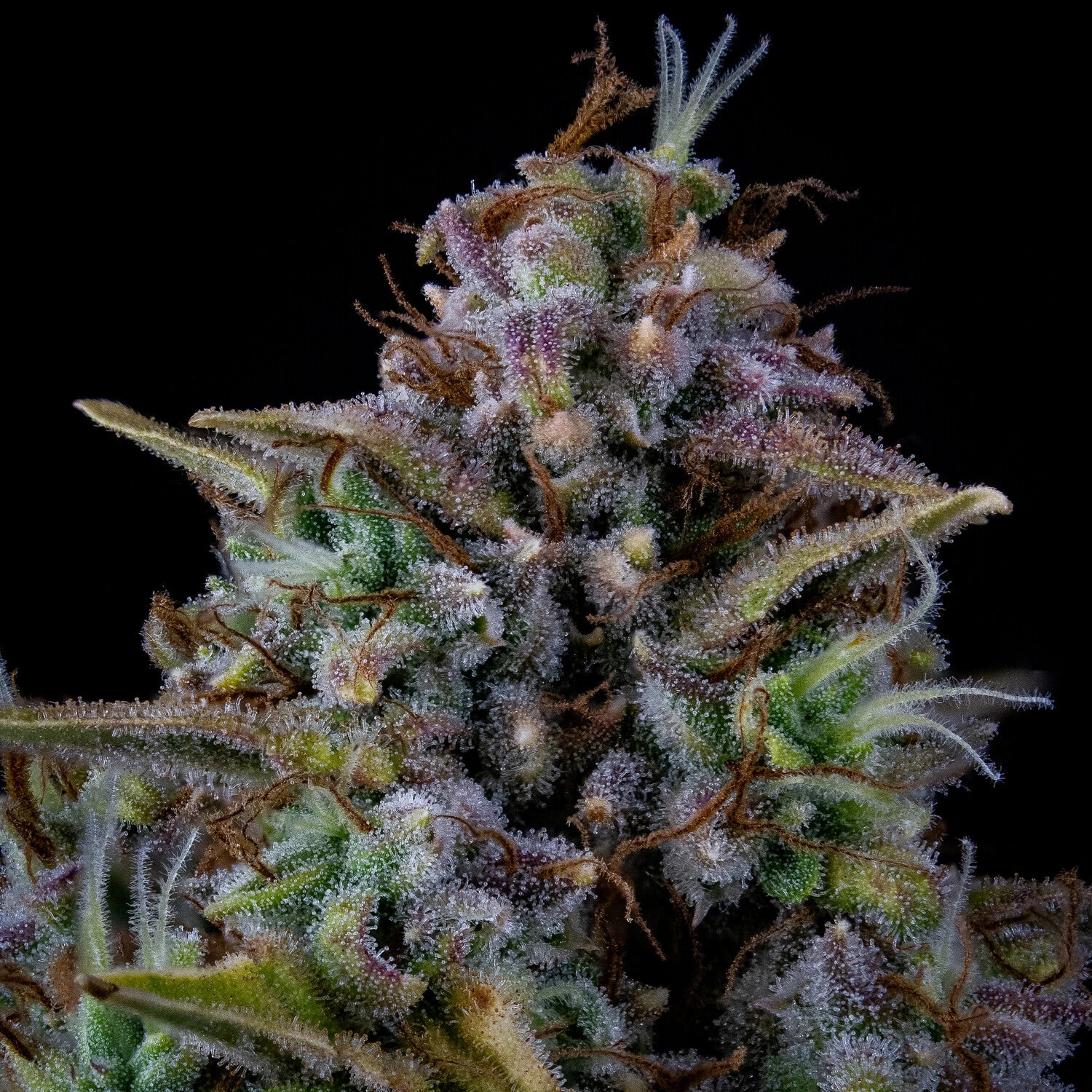 Once flowering begins, she gets to work quickly. Dodgy Jammers stacks pre-flower clusters early and builds them into dense, weighty colas with a defined main spear supported by productive secondary branches. Buds grow tight and heavy with closely packed bracts that take on a glossy, resin-coated finish. Trimming her is straightforward, as she produces little in the way of excess leaf by the time she reaches maturity.