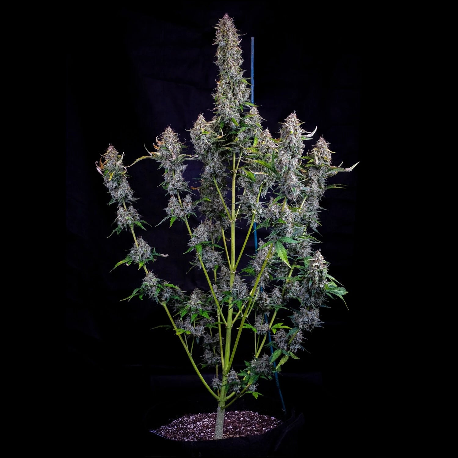 Dodgy Jammers is a straightforward cultivar to sow and grow for most environments and skill levels. In her early development, she settles into a sturdy, well-proportioned frame with a clear central leader and several confident satellite branches. She responds well to gentle guidance and is a good candidate for light training. At the Mephisto Farm, we prefer to leaf tuck where possible, although she will tolerate several rounds of defoliation without complaint unless she’s brutalised.